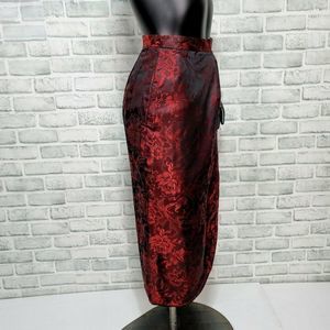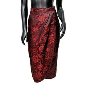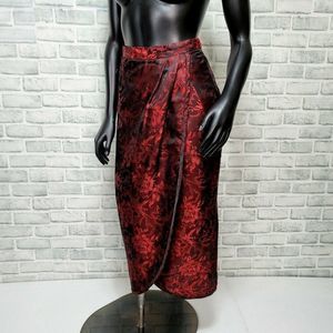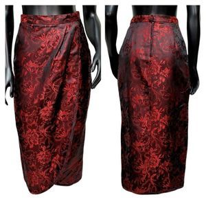 Vintage Oriental Silk Floral Embroidered Faux Wrap High Waisted Wiggle Skirt