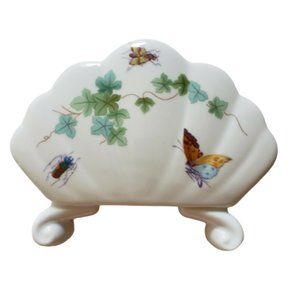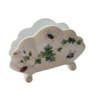 Vintage hand painted footed porcelain napkin holder. Made in Czechoslovakia.