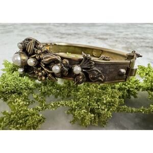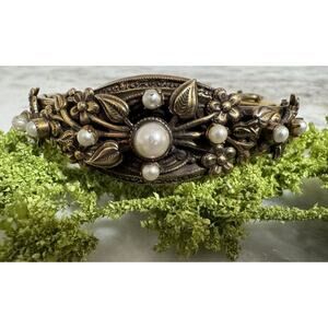 Vintage Original By Robert Elegant Pearl Hinged Cuff Bracelet Rare