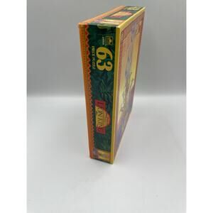 This product is a vintage original Disney Lion King puzzle by Golden Puzzles, featuring 63 pieces and measuring 11 1/2" x 15". The puzzle is based on the popular Disney franchise, Lion King, and is suitable for ages 4-8. Made in the United States, this collectible item is still sealed in its original box, making it a rare find for Disneyana collectors and fans of the iconic Lion King story.