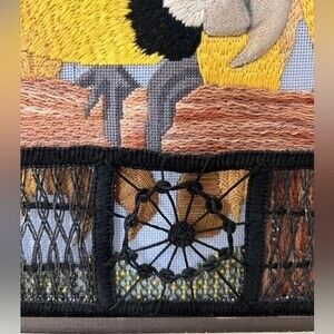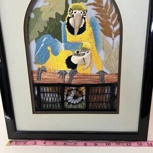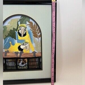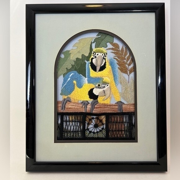 Vintage Original Embroidery Needlework Framed Art birds By H Greenhut