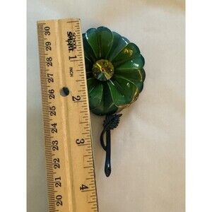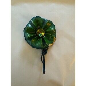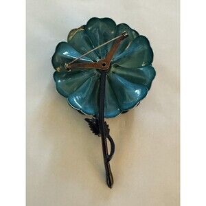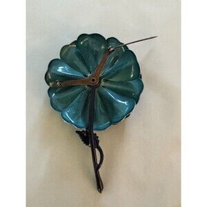 Vintage Original Enamel Brooch Pin Flower Floral Gem & Teal Petals 3D