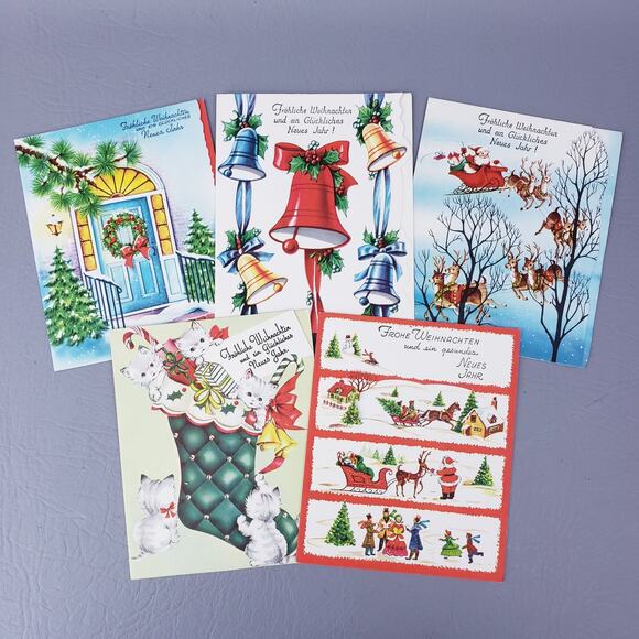 Vintage Original GERMAN Christmas Cards Lot of 5
