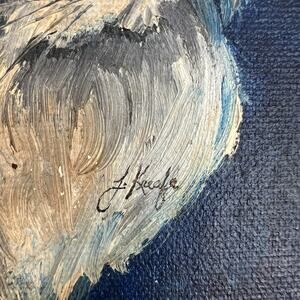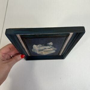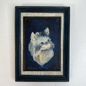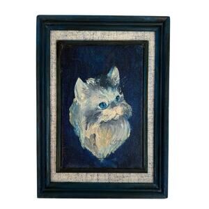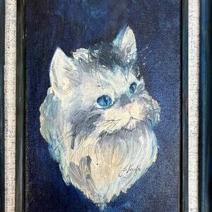 Vintage Original Oil Painting White Persian Cat Signed Art Blue Eyes Framed