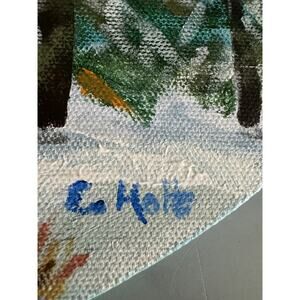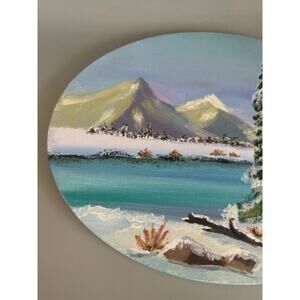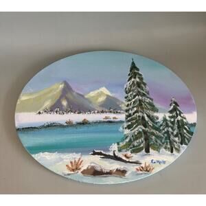 Vintage Original Painting Winter Scene Landscape Oval Unframed 14x11 Snow, Lake