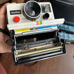 Vintage Original Polaroid SX-70 OneStep White Rainbow Stripe Land Camera TESTED