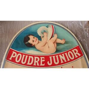 Vintage Original Poudre Junior French Baby Powder Poster Barrel Label 14x19 READ