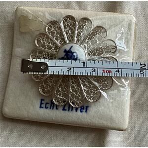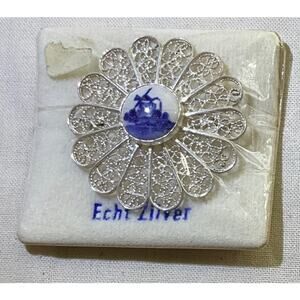 Vintage Original Sealed Silver Filigree Delft Dutch Windmill Pendant Brooch Pin
