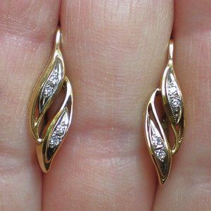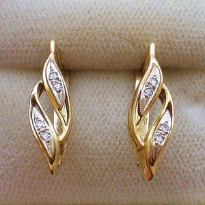 Vintage Original Soviet USSR Solid 18K 750 Yellow White Gold Diamond Earrings