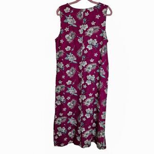 Vintage Original TY Wear Linen Blend Red Tropical Floral Maxi Dress.