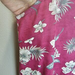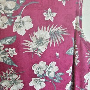 Get ready for your next tropical adventure with this stunning Vintage Original TY Wear Linen Blend Red Maxi Dress! Made with a linen blend fabric and rayon lining, this dress is perfect for summer, fall, and spring seasons. The beautiful floral pattern and sleeveless design add a touch of elegance to the dress, making it suitable for both casual and travel occasions. This dress is a size 14 and follows a shift style. Additionally, it is a long dress with a tropical theme that will make you feel like you're on vacation every time you wear it. Don't miss out on the chance to add this stunning dress to your wardrobe!