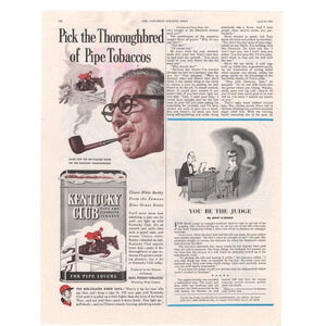 Vintage 1950s Union Oil Company of California magazine advertisement. Small Kentucky Club ad on the reverse. Appeared in The Saturday Evening Post. Black and White. Approximately 10 1/2 in W x 13 1/2 inches H. Good condition. Water stain in the top right.