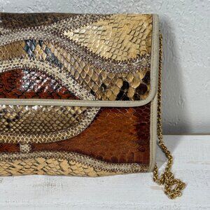Vintage Original by Caprice Snakeskin Leather Envelope Clutch Crossbody Chain