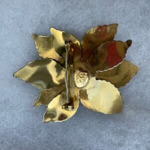 This vintage "Original by Robert" holly flower brooch will keep the holiday spirit going strong. The flower is green enamel holly leaves with bright red berries. Like the Christmas holly or poinsettias themselves, this pin can take you from November through February. A very beautiful pin to celebrate the most beautiful time of year!