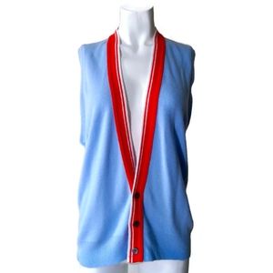 Vintage Orlon Interlock by Juno Baby Blue with Red and White Trim Knit Sweater Vest