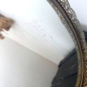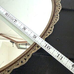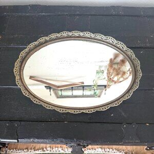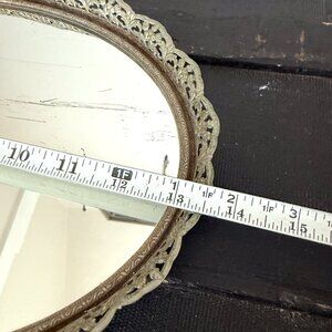 Vintage Ormolu Gold Filigree Oval Vanity Mirror Tray 1960s 1970s Dresser Display