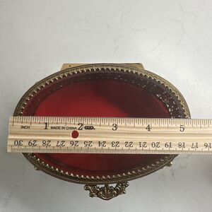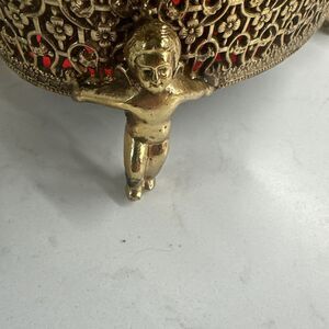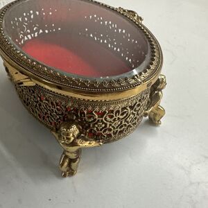 Vintage Ormulu Cherub Vanity Footed Jewelry Trinket Brass Box With Glass Top NIB