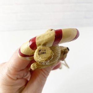 Vintage Ornament Bear Santa Hat Sitting On Candy Cane Folk Art 2001 Signed BP