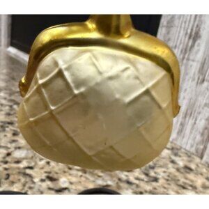 Vintage Ornament Christborn Yellow Purse With Flowers Hand Blown Glass Germany