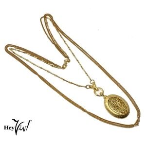 Vintage Ornate 32" Long Multi Chain Statement Necklace w Oval Pendant - Hey Viv