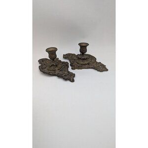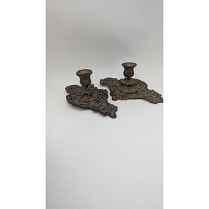 Vintage Ornate Art Nouveau candle holders brass 10" x 6 set of 2