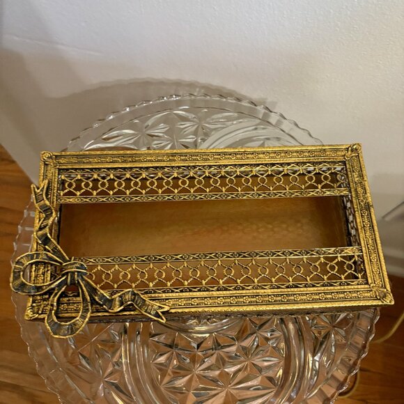 Vintage Ornate Brass Tissue Box w/ Bow Top – 10” x 5”