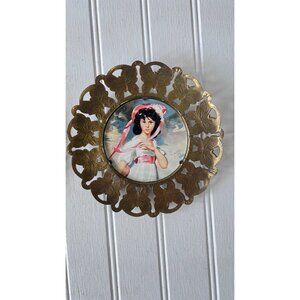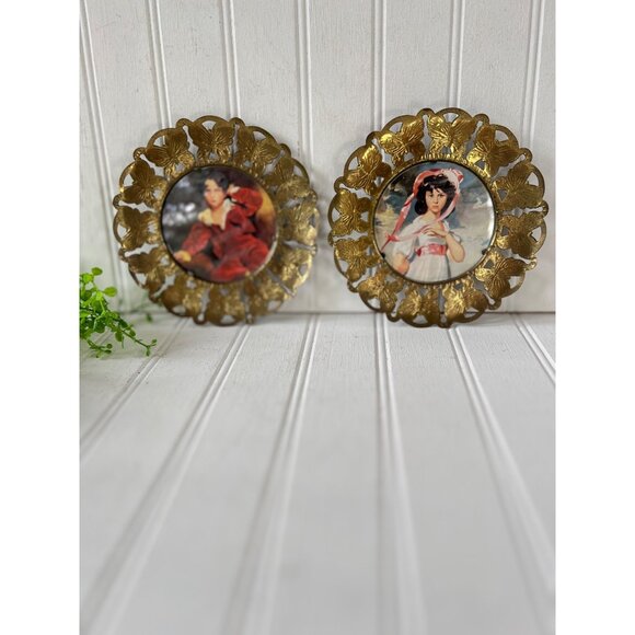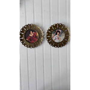 Vintage Ornate Brass Wall Plates With Romantic Portraits