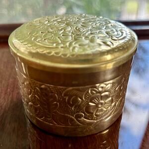 Vintage Ornate Bronze Trinket Box with Floral Embossed Design
