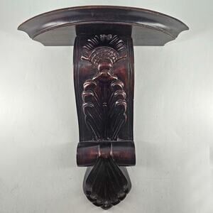 Vintage Ornate Carved wood Wall Display Hanging Sconce Shelf Mahagony