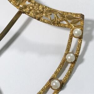 Vintage Ornate Filigree Pearl Gold Gilt Victorian Sash Belt Buckle Large Oversized Estate Jewelry Accessories