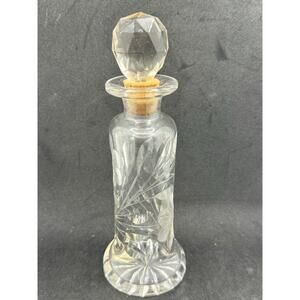 Vintage Ornate Glass Perfume Bottle- Etched Glass Floral Pattern W Cork BEAUTY