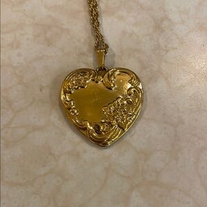 Vintage Ornate Gold Heart Necklace with Intricate Detailing