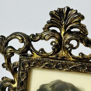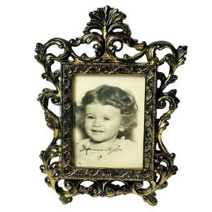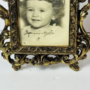 Vintage Ornate Gold Metal Picture Frame Swing Stand Photo Little Girl 6X8.5"