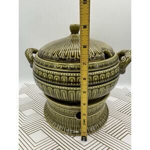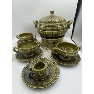 Vintage Ornate Green Ceramic Tureen Soup Set Pot Retro 12 Pieces