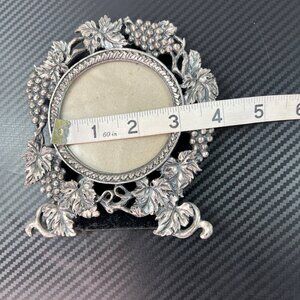 Vintage Ornate Linco Perfect Pewter Grape Leaf Photo Frame 3” round