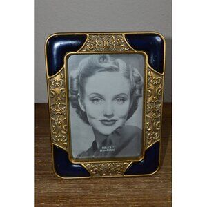 Vintage Ornate Made In Taiwan Picture Frame Navy Blue Gold Art Deco Hollywood