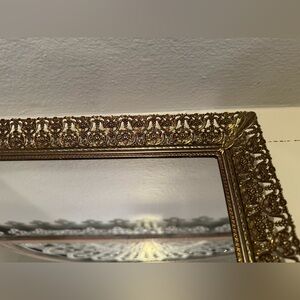 Gorgeous Vintage Ornate Gold Filigree Mirrored Vanity Tray