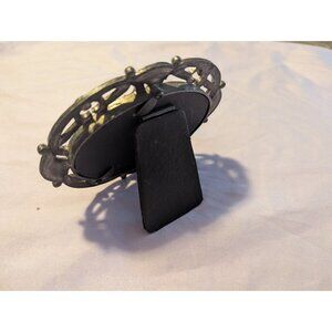 Vintage Ornate Oval Picture Frame Floral Print Rhinestone Accents & Easel Back