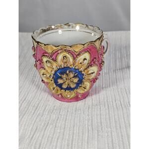 Vintage Ornate Pink & Gold Porcelain Demitasse Cup Hand-Painted Floral Design!
