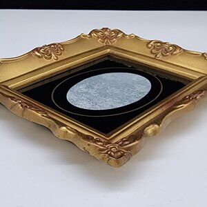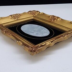 Vintage Ornate Plastic Picture Frame With Oval Reverse Painted Glass USA 3.5x4.5