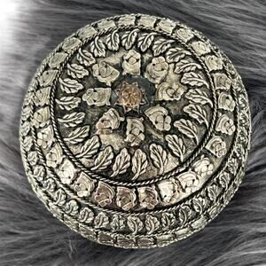 vintage silver ornate floral sphere decorative accent antique-style elegant home decor boho chic accessory intricate design collectible piece bohemian shabby chic decorative orb modern home décor accent sphere stylish tabletop decoration contemporary decorative ball sleek ornamental sphere