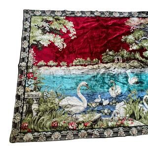 Vintage Ornate Swan Lake Floral Bird Tapestry 46”x68” Moroccan