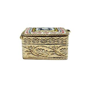 Vintage Ornate Trinket Pill Box Intricate Mosac Tile Filigree Detail Italy
