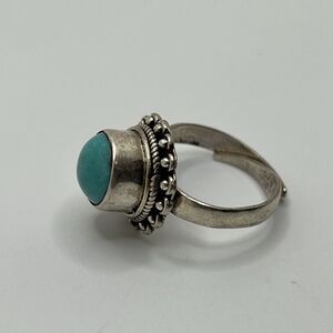 Vintage Ornate Turquoise Sterling Silver Ring Size 5 Approx 7.1 grams Adjustable