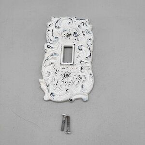 Vintage Ornate White Cast Iron Single Light Switch Cover Plate With Screws