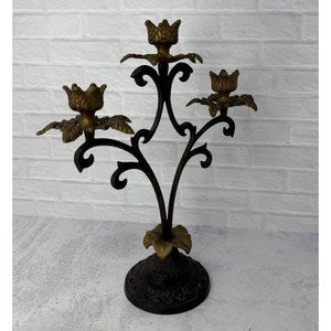 Vintage Ornate Wrought Iron and Brass 3 Arm Candelabra Candle Holder 12" tall