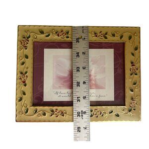 Vintage Ornate Yellow Floral Metal Picture Frame With Red Green Rose Design