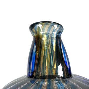 Vintage Orrefors Ariel Vase Edvin Ohrström Blue Amber Swirl Stripe Art Glass MCM