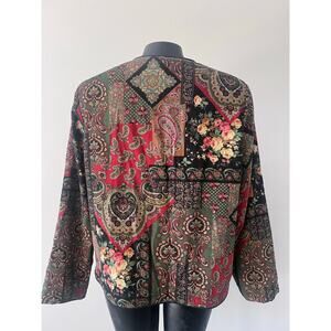 This is a Vintage Orvis Corduroy Blazer Jacket Sz M Paisley Patchwork print with ButtonUp style with front pockets (appears to be a Medium but tag is missing). Perfect for any Vintage, 90s, Fall, Winter, Preppy, Boho, Festival, or Casual aesthetic.