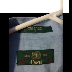 Vintage Orvis Fishing Lightweight Short Sleeved Chambray 1 Pocket Button Down L